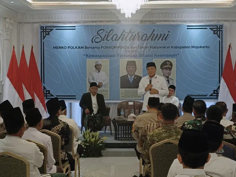 Mojokerto – Menteri Koordinator Bidang Politik dan Keamanan Republik Indonesia, Djamari Chaniago, melakukan kunjungan kerja ke Pondok Pesantren Amanatul Ummah, Desa Bendunganjati, Kecamatan Pacet, Kabupaten Mojokerto, Sabtu (14/2/2026).